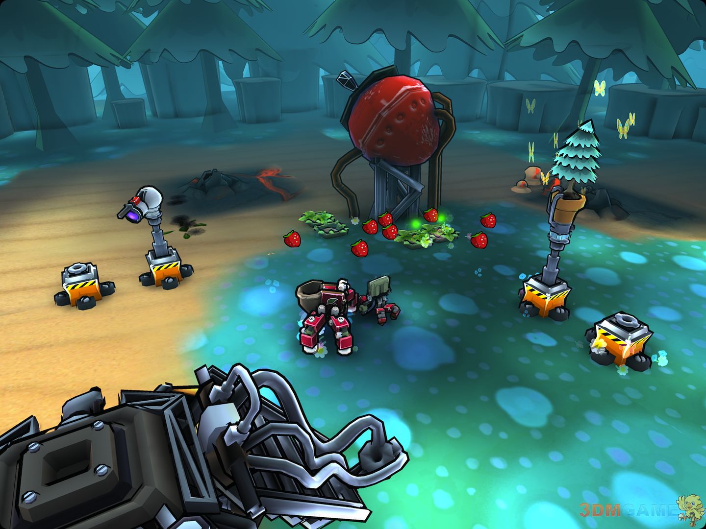 造塔实在是太棒了,用不占人口的防御塔轻松抵御敌人攻击,本作就是这样一款塔防游戏。玩家操控机器人收集草莓,制造高科技武器(什么鬼啦!)来防御来者不善的外星生物,究竟能否挺过攻击最后离开呢,快来尝试吧!