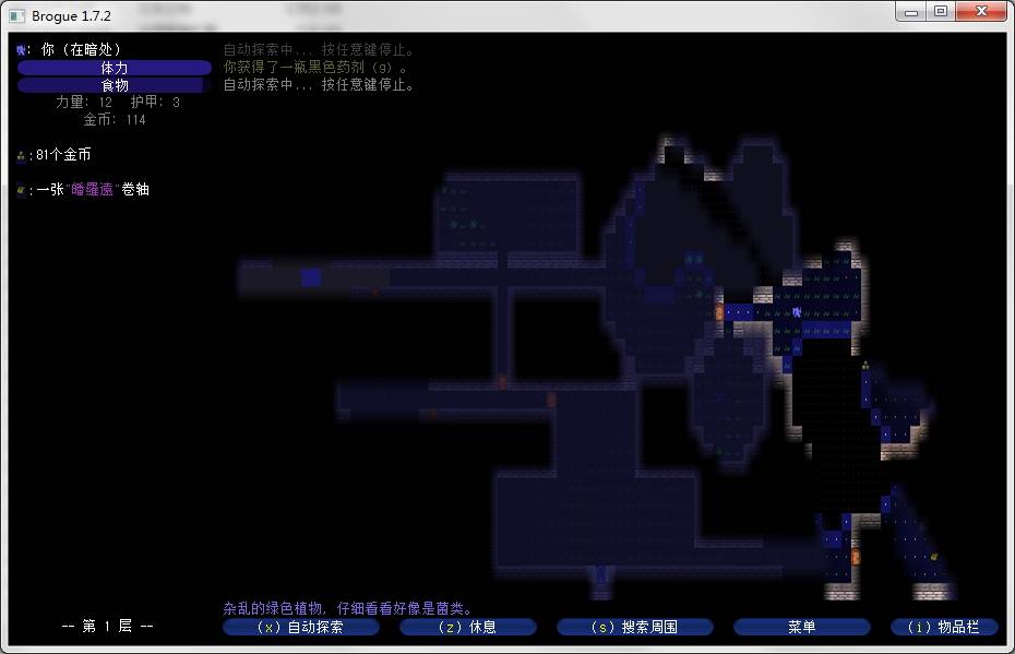 Brogue我自己玩了很久,一直觉得这个是Roguelike入门的神器。之前碰巧找到一个修改版做了很多图像上的优化,而且还顺便把中文显示基本解决了,然后我就试着汉化了下。现在的情况是基本都汉化全了,我自己开作弊通关过一次普通情况是看不到英文了,存档和回放也都能用。