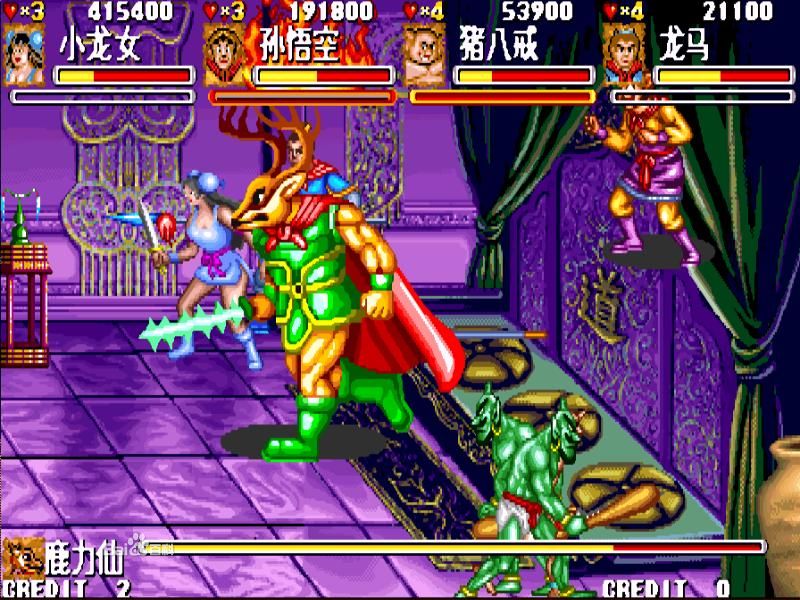 《西游记释厄传》是一款经典的街机游戏。游戏以中国传统名著《西游记》为蓝本,玩家可选择唐僧师徒四人及龙马等角色。每个角色都有独特的技能和招式,战斗场面精彩。游戏中关卡设计巧妙,玩家需闯过重重难关,打败各种妖魔鬼怪,如白骨精、牛魔王等。在冒险过程中,玩家要利用走位、连招和法宝来应对敌人。它支持多人合作,玩家可以和朋友一起并肩作战,体验取经路上的艰辛与乐趣。其精美的画面、富有动感的音乐以及熟悉的人物和故事背景,让玩家沉浸其中,回味经典。