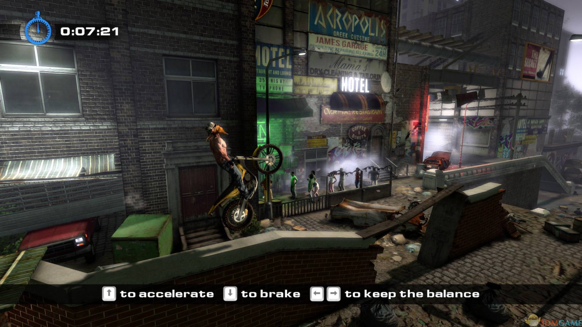 一款摩托车竞速游戏,然而并不是越快就越好,还要看你在驾驶过程中做的精妙危险动作最终做出综合评价。如果只是追求速度和飙车的快感的话,可能本作不是很适合你,但是你要是想开的又劲又酷,那么可以尝试一下本作。