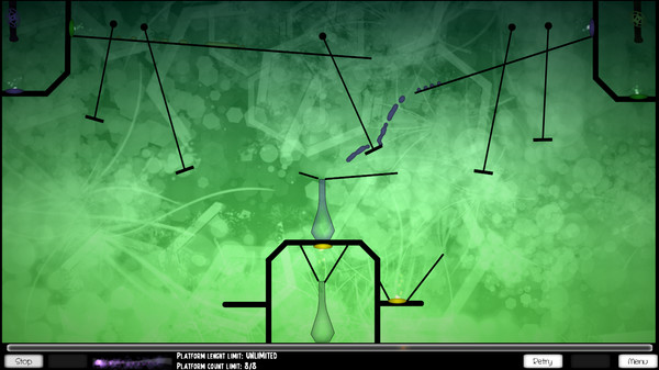 2SD制作发行的一款画面绚丽的益智类小游戏。游戏中玩家的目标是在场景中画出轨迹,用来规划液体的流向,并将不同颜色的阀门中流出的液体导入到正确颜色的的烧瓶中去,烧瓶中收集的液体越多越好。