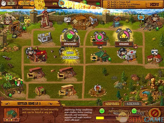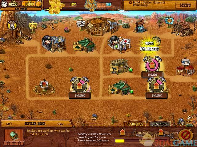 在1850年代的西部边境沿着历史的足迹,一边采集黄金、木材和其他资源,一边建立定居点吧!选择不同的建筑物来发展你的村落,比如说盖工作坊可以解锁新的技术,贸易站可以和附近的村落交易,监狱可以让警长把通缉犯关起来等!