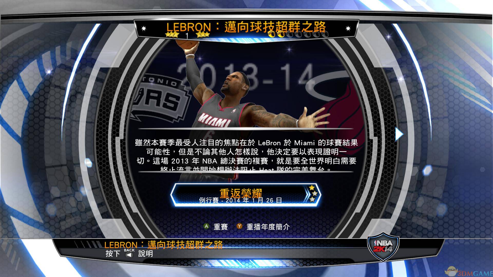 《NBA 2K14》是2K Sports发行的电子篮球游戏“NBA 2K”系列新作,游戏将增添许多新系统。玩家在线上打排名赛可以自动匹配数据水平相当的对手。另外,更多球员的招牌动作将被加入。