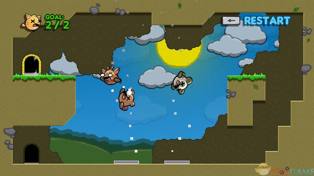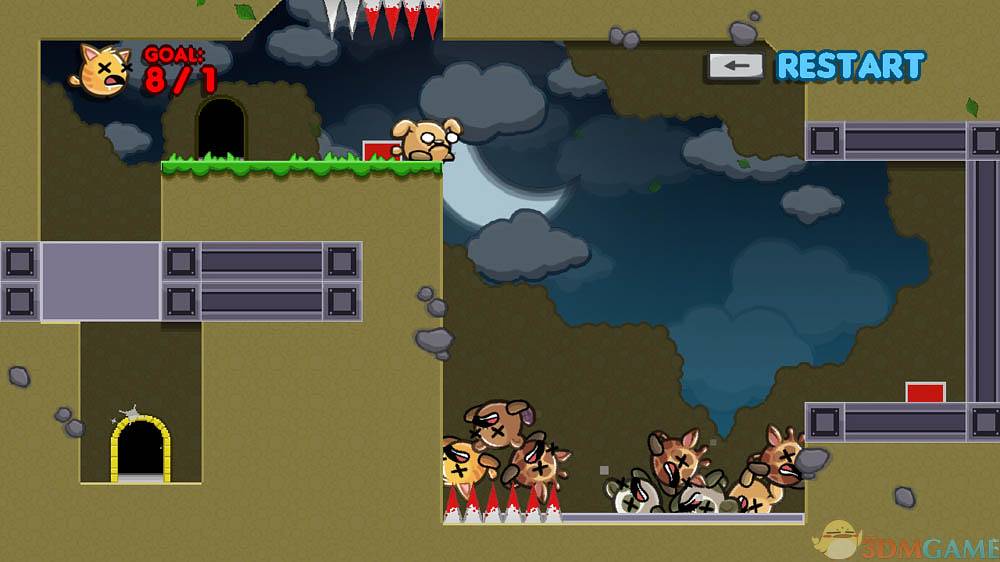 这款游戏的解谜模式有些奇葩,每个关卡都必须让我们可爱的主角死掉,然后利用其尸体才能通过机关。例如利用尸体来填上无法跳过的大坑,以及利用尸体压住开关才能打开大门的等等。为了到达目标,踩着同伴的尸体前进吧。