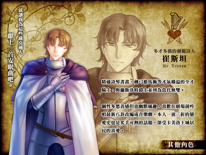 属性与含有要素为:乙女向/圆桌骑士团中心/史诗改编/奇幻/二次设定
