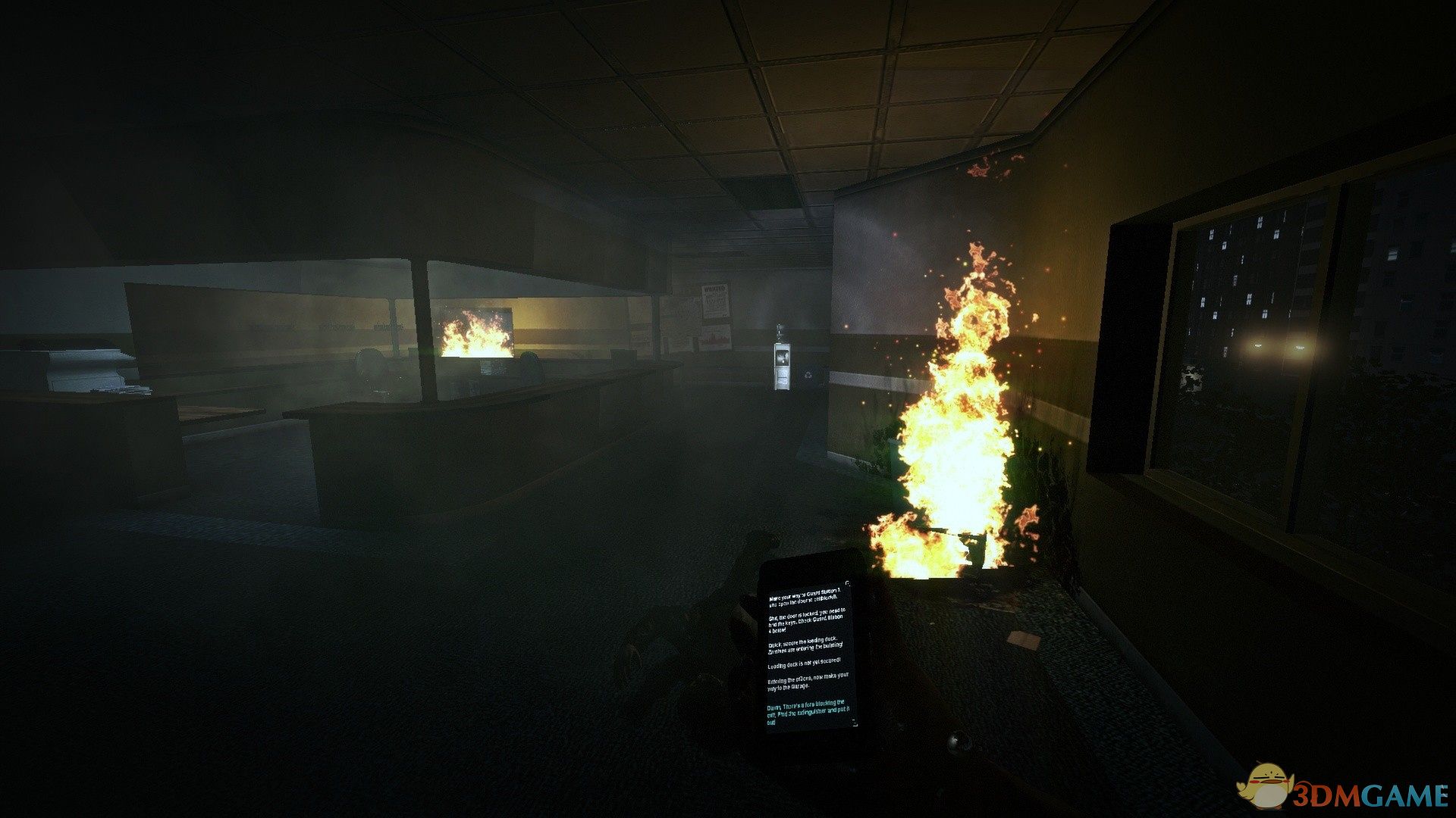 Monochrome对游戏风格的把握十分独到,最让人印象深刻的就要数主菜单界面的背景了,一开始还以为是一段循环动画,但是当我发现右下角的控制键后就彻底被征服了,这是一套完整的监控系统。你可以看到到处游荡的僵尸们究竟在干什么,对于一个独立游戏来说能将游戏细节如此细心的完善的十分强悍,甚至很多公司制作都没有这样的艺术造诣。