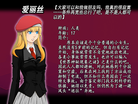 在游戏中,爱丽丝……(其他介绍待会直接上图好了),为避一避人们的闲言碎语通过一些手段转到了一所中国学校,但事情还是瞒