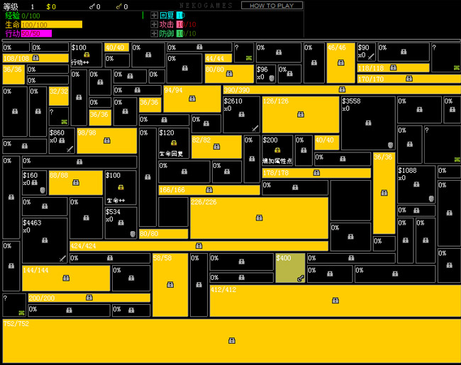 有练级、有收集、有成长、有隐藏要素、有赌博机制、有行动力限制、有PK、有道具购买、有解迷……RPG的数值系统该有的它都有了,却木有剧情、基本木有画面、木有音乐……花了一个多小时才通关,却还有很多要素没有解开。