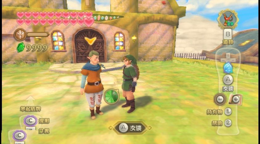 《塞尔达传说:天空之剑(The Legend of Zelda - Skyward Sword)》是由游戏厂商Nintendo制作并于2012年01月22日发行在多平台上的一款角色扮演类游戏,由ACG汉化组汉化。本作的盾牌和剑有更大的决定性,高举右手的遥控器时可以蓄力,射箭时需摆出类似真正的射箭姿势,右手在前、左手在后,瞄准方向后再按钮发射。