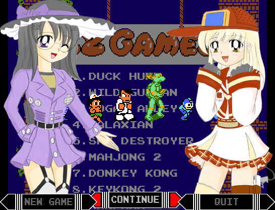 简中《激萌!任天堂萝莉》是由游戏制作者SLICK制作并于2011年2月26日发行在PC平台上的一款RPG游戏。游戏中有两位主人公,分别是FC娘(红白机的萌化物)和GB娘(GBA的萌化物)这一对双胞胎姐妹