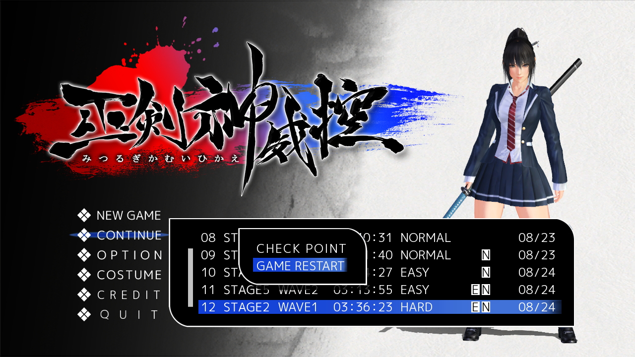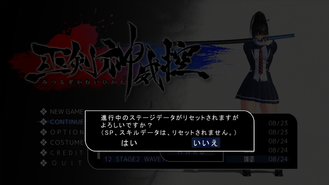 0人《巫剑神威控(Mitsurugi Kamui Hikae)》是由游戏厂商Zenith Blue制作,PLAYISM于2013年发行在PC平台上的一款动作冒险类(ACT)游戏。在游戏内你将扮演一位名叫壬佐(みさ/Misa)的女孩,她将使用圣剑去追杀其同门铃华(すずか/Suzuka),原因是铃华使用了魔剑杀死了他们的师傅。