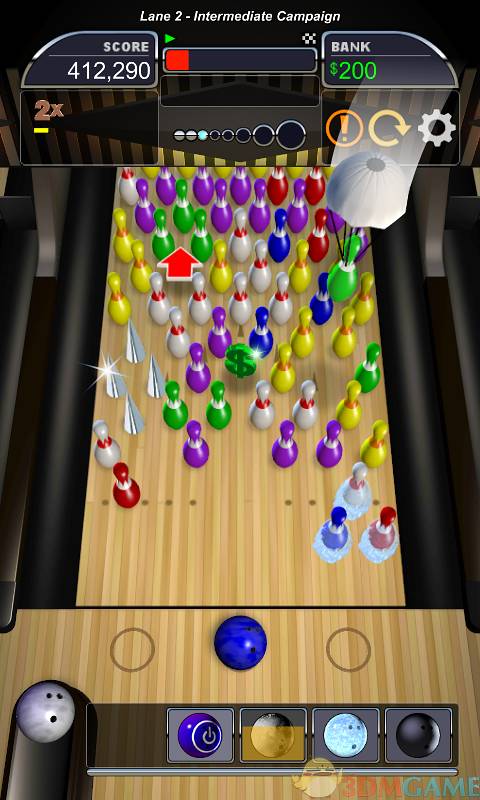 配置要求比较的另类的打保龄球方式,规定的球只能打对应的球。游戏小小考验玩家规划能力,随着越来越多的颜色和复杂程度的增加,更需要很好的规划才能顺利通关。