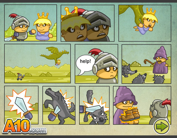 游戏讲述了骑士查理因为打仗胜利受到了国王的嘉奖勋章,他本来打算用这勋章跟公主女友求婚,可正当他要开口的时候恶龙出现,抓走了公主,势单力薄的他其实对战胜恶龙没有信心,可是他还是毅然决然地出发了。路上他拯救了一个正在被狼群攻击的魔法师,作为报答,魔法师赠予了他一双神奇的魔靴,只要穿上它便能轻松改变周围物体的运动方向与状态,可是恶龙很强大,骑士能否借助这魔法靴成功救出公主,就看你的了!