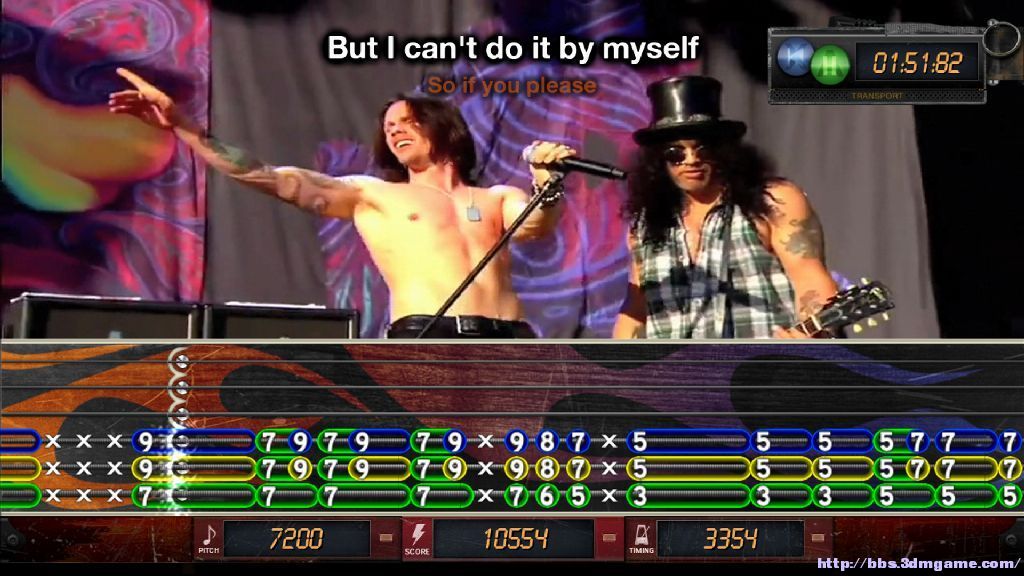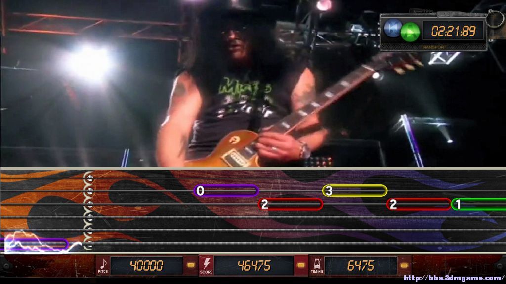 本作支援真实吉她以及麦克风,游玩画面采用吉她的六线谱而非当今多数音乐游戏所使用的节奏记号,玩家可以进入知名吉她手Slash以及其她有名乐团、乐手的世界。