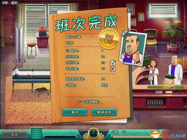 简中《中心医院第一季(Heart’s Medicine - Season One)》是由游戏厂商GameHouse制作并于2010年11月16日发行在多平台上的一款模拟经营类游戏。由游乐园汉化组汉化。玩家扮演Allison这一角色,帮助她通过学习,使她相信自己也能像她的导师那样,在一天内变成一名伟大的医生!