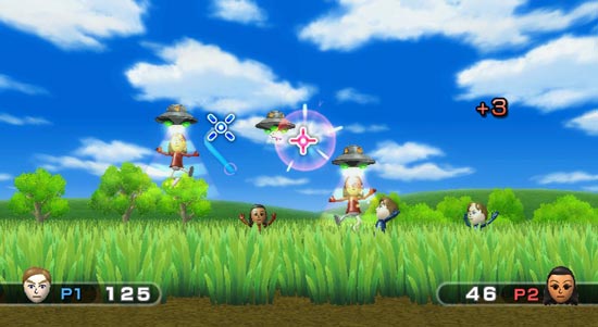 内含9 种类游戏和 Wii 遥控器,立即可以2人同乐.Wii Play是由一系列小游戏组成,包括经典的打鸭子和Pong,以及一些其它解谜和街机风格的游戏.Wii Play广泛利用到Mii人物和Wiimote,因为大多数游戏需要完成正确的手势,指向屏幕上的Mii人物和道具或者是击中一个乒乓球.在Find Mii这个小游戏中你需要寻找最快移动的Mii或者一对一样的Miis.Fishing(钓鱼)则充分利用了Wiimote的特性.任天堂说Wii Play中将包含一些秘密.Wii Play还捆绑了一个免费的Wiimote,这使得它非常超值.可能Wii Play看起来不是很有深度,不过它会经常给你快乐,丰富的小游戏将使你的游戏体验更加多彩多姿.
