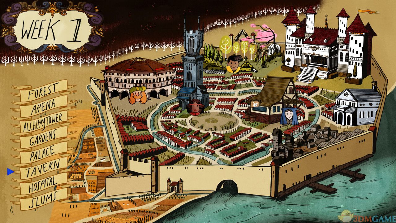 游戏的风格十分的具有创意,而且还有着浓浓的卡通风格,玩家们在玩这款游戏的时候有可能会想起生存神作饥荒,在游戏中玩家们通过界面的选项来到达自己想要去的地方,和点击类的冒险文字游戏很像,而且在游戏中的时间设定对玩家们也很重要,每一个星期玩家们都不要浪费啊。