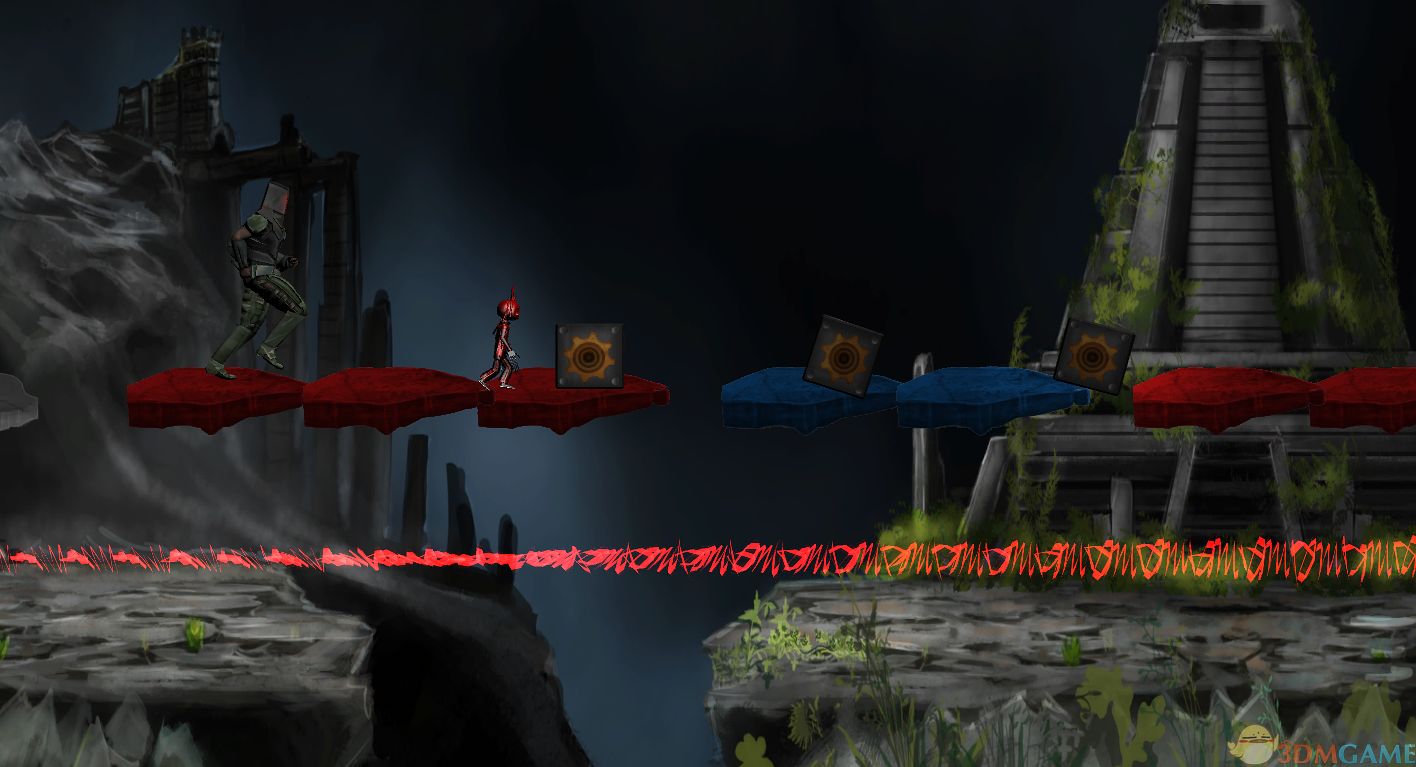 红色的地面:你只能用E状态下的颜色在这个地面上正常行走,别的颜色都会造成死亡。