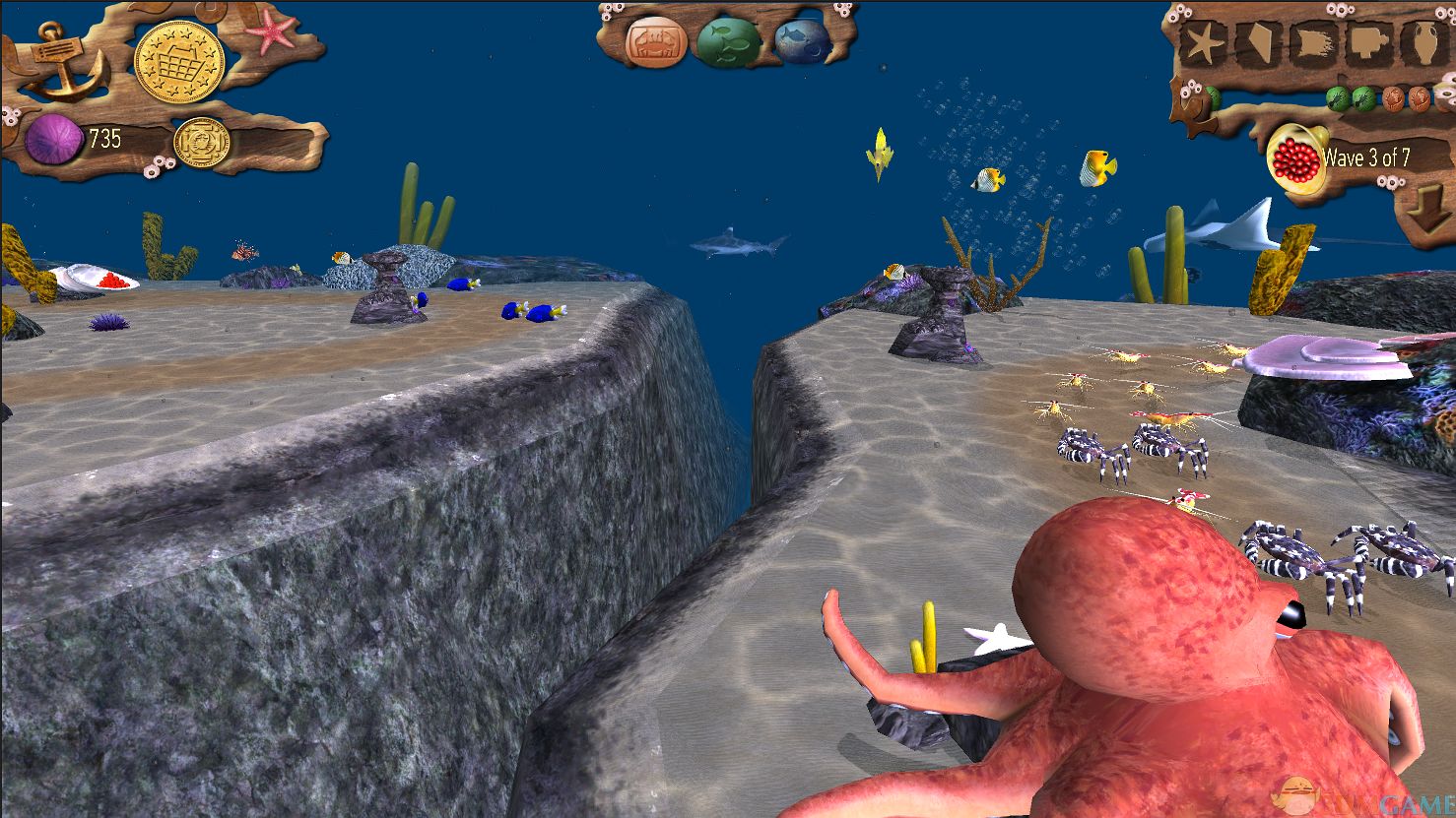 游戏讲述了在这个海底世界里,螃蟹和小鱼成了对立的阵营,在海底世界展开了战斗,那么我们的小鱼究竟要怎样才能战胜强大的螃蟹呢?让我们一起来进入游戏来看下吧。