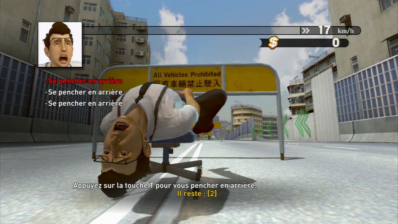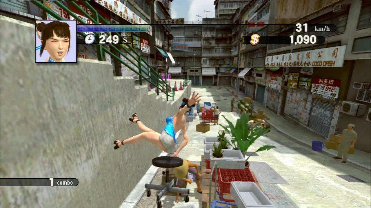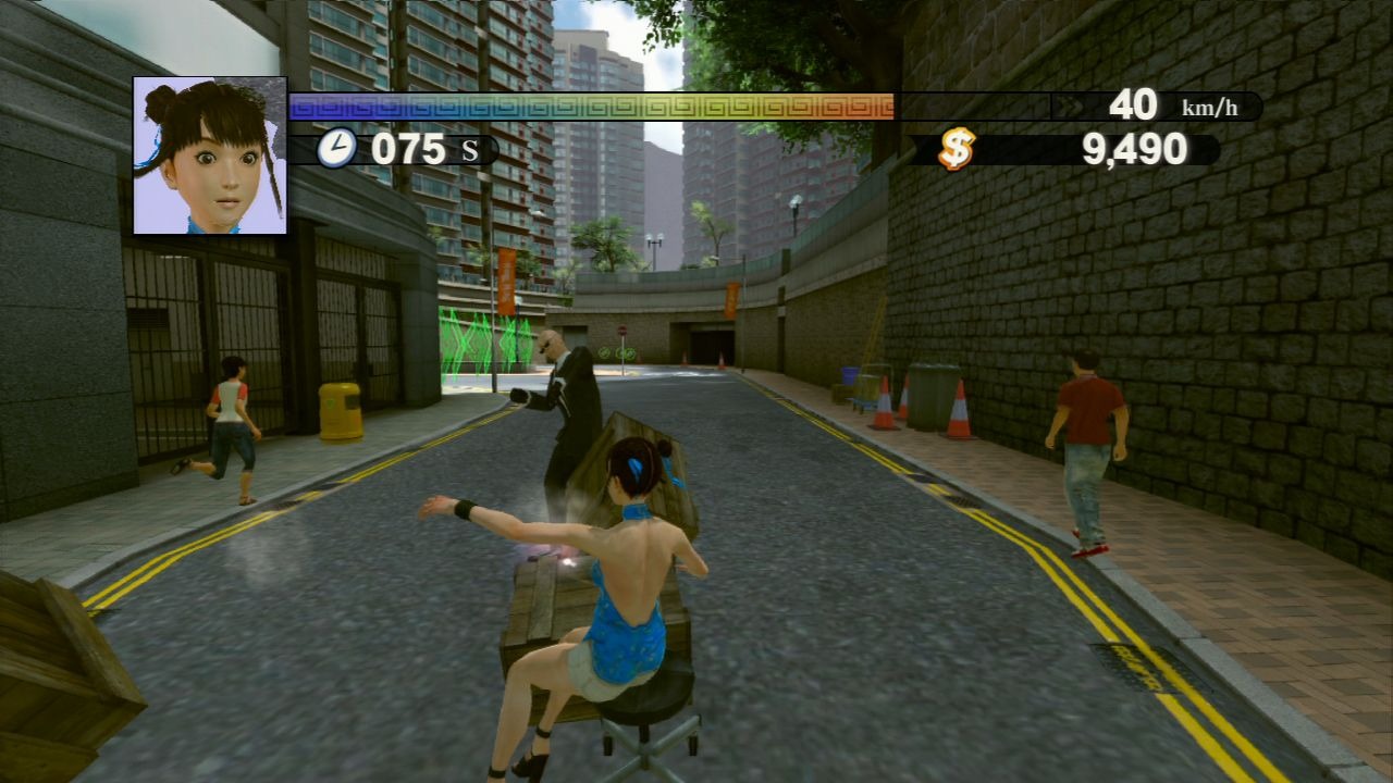 游戏以香港市区街道作为背景,内容讲述私家侦探飞仔(Toby)因为查案而被黑帮追打,玩家需要利用PlayStation Move来控制飞仔或者他的助手家玲(Karin),在办公室椅子或其他有轮子的器具上滑行,以功夫来避开黑帮的攻击以及各种障碍物,期间可以收集道具来增加分数,在跌倒不超过4次,并于限时内登上侦探社的车子为之完成游戏。