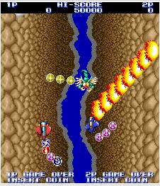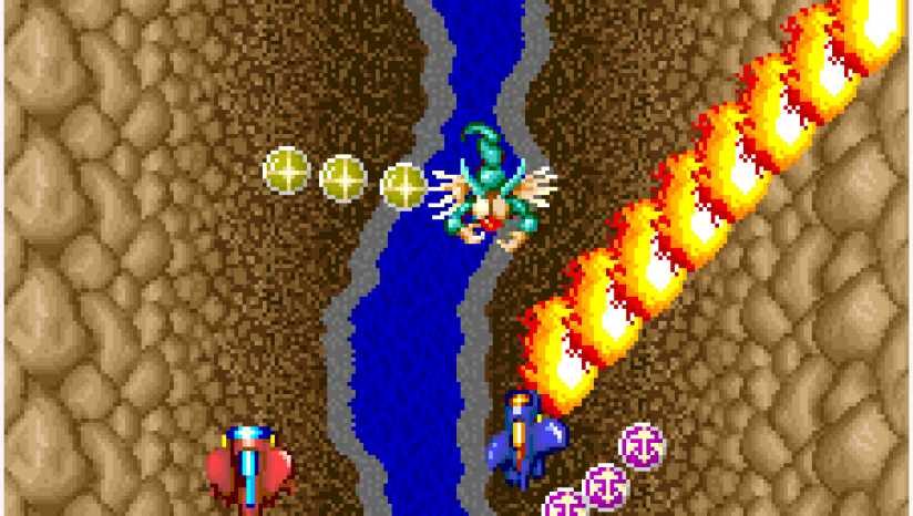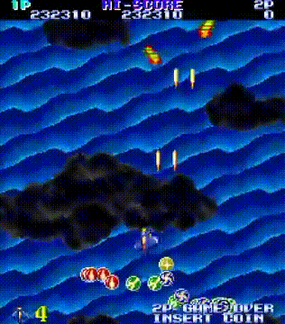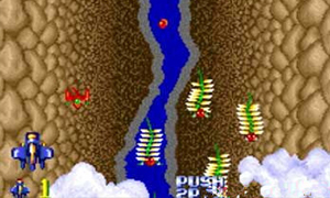 至今,我见过的STG中无出其右者。他拥有早期的作品共有的高难度,也拥有着传统游戏的互动突出性。没有火力增强,这在STG来说,恐怕是很少见的了,但正也正是无火力增强,使得游戏对特殊武器的依赖也无形中增强,而容易获得的,变化多端,种类丰富的尾挂特殊武器,也正是这个游戏最大的亮点。我还清晰地记得玩的时候猛K带尾挂的蝎子,把它挂接的特殊武器打得不断变化,等打到有自己需要的东西以后上去抢劫的情景。而双打的时候互相抢特殊武器也是乐事一件。