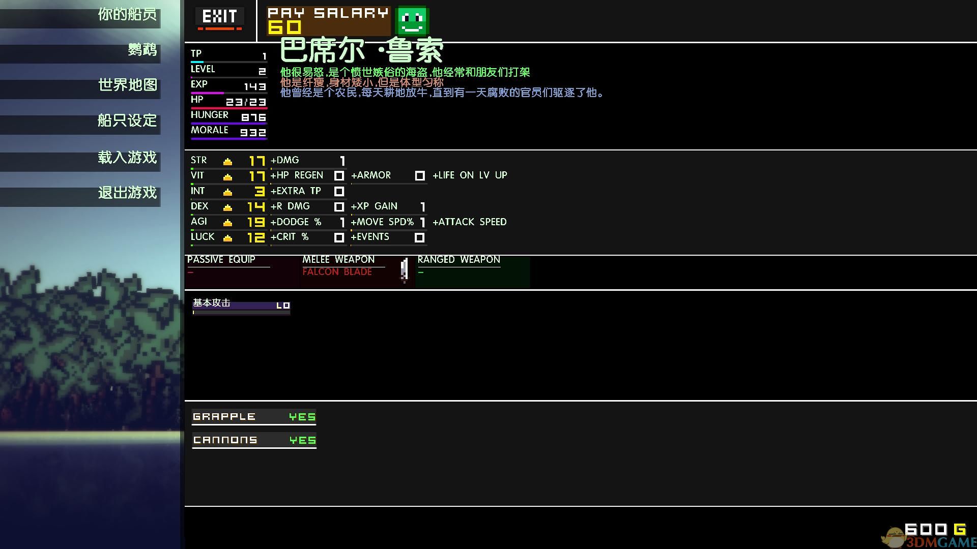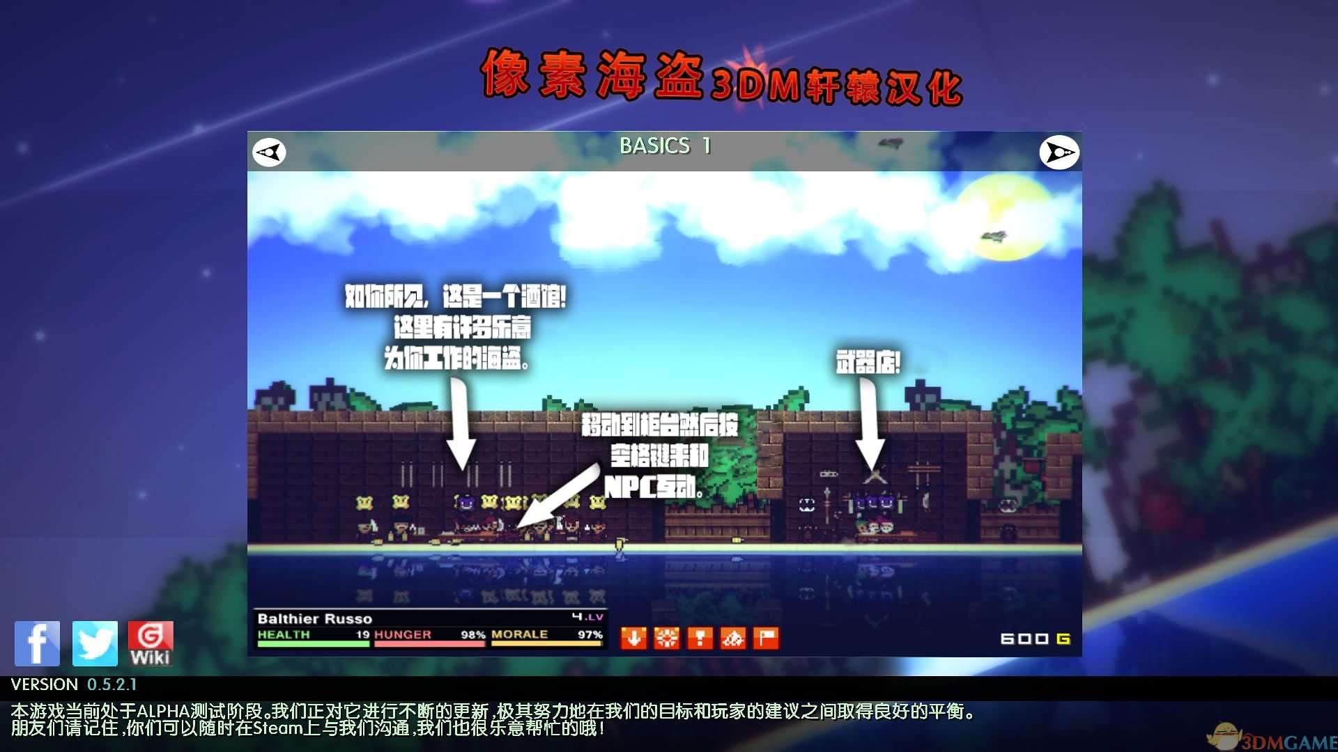 3DM汉化《像素海盗(Pixel Piracy)》是一款横版2D沙盒模拟类游戏,由Vitali Kirpu独立制作。在游戏中玩家需组建一支海盗队伍驾船出海,击败其他的海盗。游戏的战斗采用可暂停的即时模式,一旦失去队员或海盗船被毁,就必须重新开始。