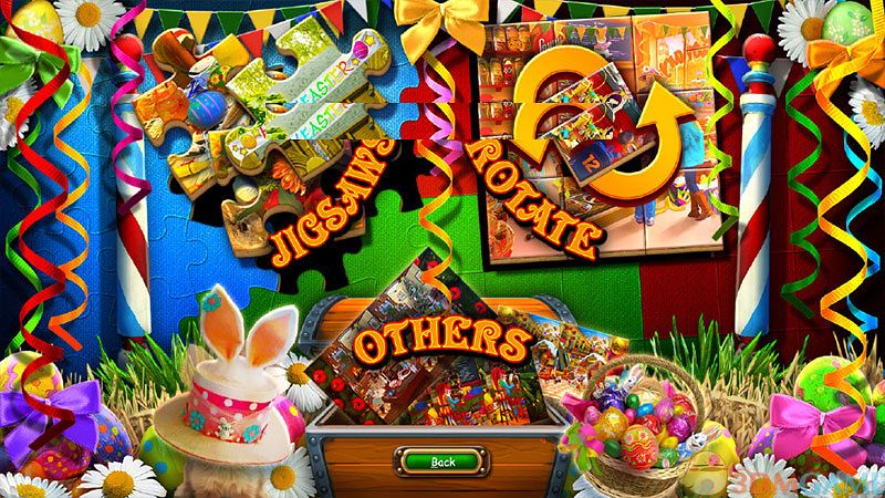 《复活节终极大考验(The Ultimate Easter Puzzler)》是由游戏厂商Casual Arts制作,iwin于2014年发行在PC平台上的一款以复活节为主题的各种不同的拼图游戏,复活节象征着重生与希望,而《复活节终极大考验》这款游戏同样充满了春天的气息。活泼生动的设计风格使得本作趣味性很强,而简单、中等、困难、极限,从易到难的四种难度使得各种水平的玩家都可以乐在其中。