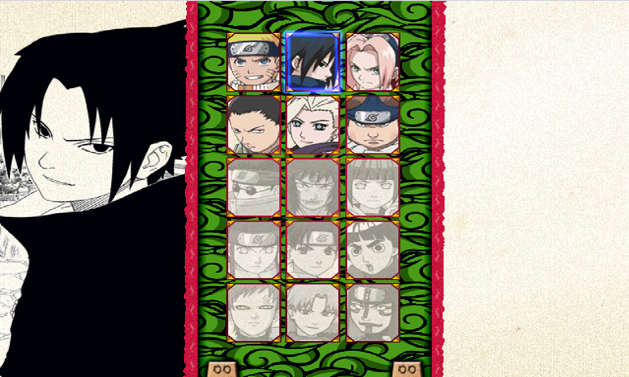 0人《火影忍者:忍者断裂》是一款用mugen制作的火影忍者的一款同人格斗游戏。目前为试玩版,游戏中只有6个角色可以选择。支持双打。