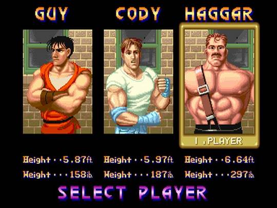 《快打旋风(Final Fight)》是由游戏厂商CAPCOM制作并发行在多平台上的一款ACT游戏,Capcom的招牌作, 世界观设定在美国一个堕落的城市Metro City, 由于巨大的暴力集团Mad Gear的存在,这里充斥着暴力和死亡。 出场的敌方角色也明显带有60, 70年代的嬉皮士风格。