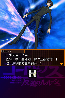 《代号基亚斯:反叛的鲁路修(Code Geass: Hangyaku no Lelouch)》是由游戏厂商BANDAI制作,NBGI于2007年10月25日发行在NDS平台上的一款RPG游戏。由掌机动力汉化组汉化。,是同名动漫作品改编。此次改编成游戏,类型为RPG,在模式上进行了新的尝试。