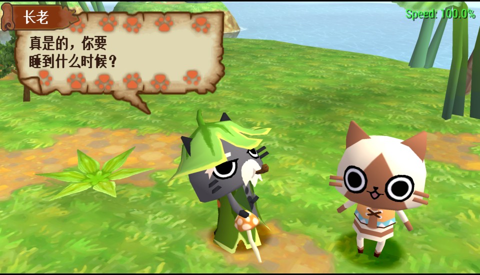 以随从猫为主角的本作将以育成的方式来进行游戏,在游戏中我们将会体验到作为随从猫在生活上的种种,又要耕田、又要做饭、更要为主人们当怪物的炮灰,猫的一生煞是辛苦啊!游戏的舞台是“猫猫村”,那么除了玩家扮演的猫猫之外,自然还会有其他的猫猫存在,在游戏中将会有多个个性十足的猫猫伙伴,它们不单只是你生活上的同伴,和你一起对抗蓝跳跳,并且还会和《MH2G》有联动要素哦!