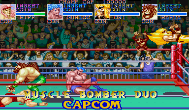 0人《摔角霸王:热血战士(Muscle Bomber Duo - Heat Up Warriors)》是由游戏厂商CAPCOM制作并发行在多平台上的一款FTG游戏。每个人物都有自己的绝招,大部分都是肌肉男,这个游戏摇招比较容易,但是摇杆和按键容易坏。