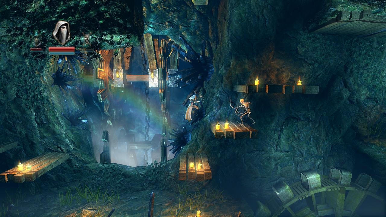 游戏中的玩法基于充分的物理互动性-每个角色都拥有不同的技能,可以帮助玩家与不死生物战斗或者消灭某个危险地奇妙机器。在 任何时间里,玩家都可以自由选择最适合应付当前挑战或谜题的英雄:男巫可以召唤物件解决谜题或者建造出一个跨越障碍的桥梁, 小偷的快速敏捷和惊人射术让怪物无从反应,战士总是给所到之处带来巨大伤害和物理性摧毁。