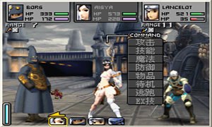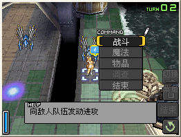 这是一款战略角色扮演游戏,每一队3人1组,也即最多成为敌我3比3的战斗。DS机在战斗态上屏幕显示的是敌方状态,下屏幕显示我方的;非战斗态上屏幕是各项指标以及简易地图,下屏幕显示我方周围状况和菜单。