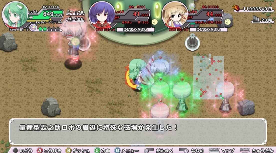 1人《更加不可思议的幻想乡2(Miracle Party -Mystery Gensokyo 2)》比第一部作品的是水准高出不少,不仅仅是画面上的升级,而且在操作以及玩法上都有了较大的更新,更重要的支持玩家控制多人来进行冒险,你不再是孤身一人在地牢探险了。