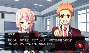 人的气息从城市之中消失,简直就像是被静寂所包围着的无人废墟。天空犹如鲜血的泉水一样染成了红色、悬挂着一个仿佛掉进了墨汁里的漆黑月亮。绫女ヶ丘变成了一个除了自己两人就没有别人的荒凉世界。在漆黑的巨大月亮之下,在赤之夜的世界中就只剩下駆与ゆか两人了。面对替代了城市中的人的、那些异形般的蠢蠢欲动的存在、无计可施的駆与ゆか除了逃跑就没有别的应对方法了。虽然两人知道过了一定时候的话,世界就会从「赤之夜」回归到现实,然而「赤之夜」是不受时间与地方限制随时出现的。对这时空的切换而感到疲倦不堪的两人,面临着性命的危险……