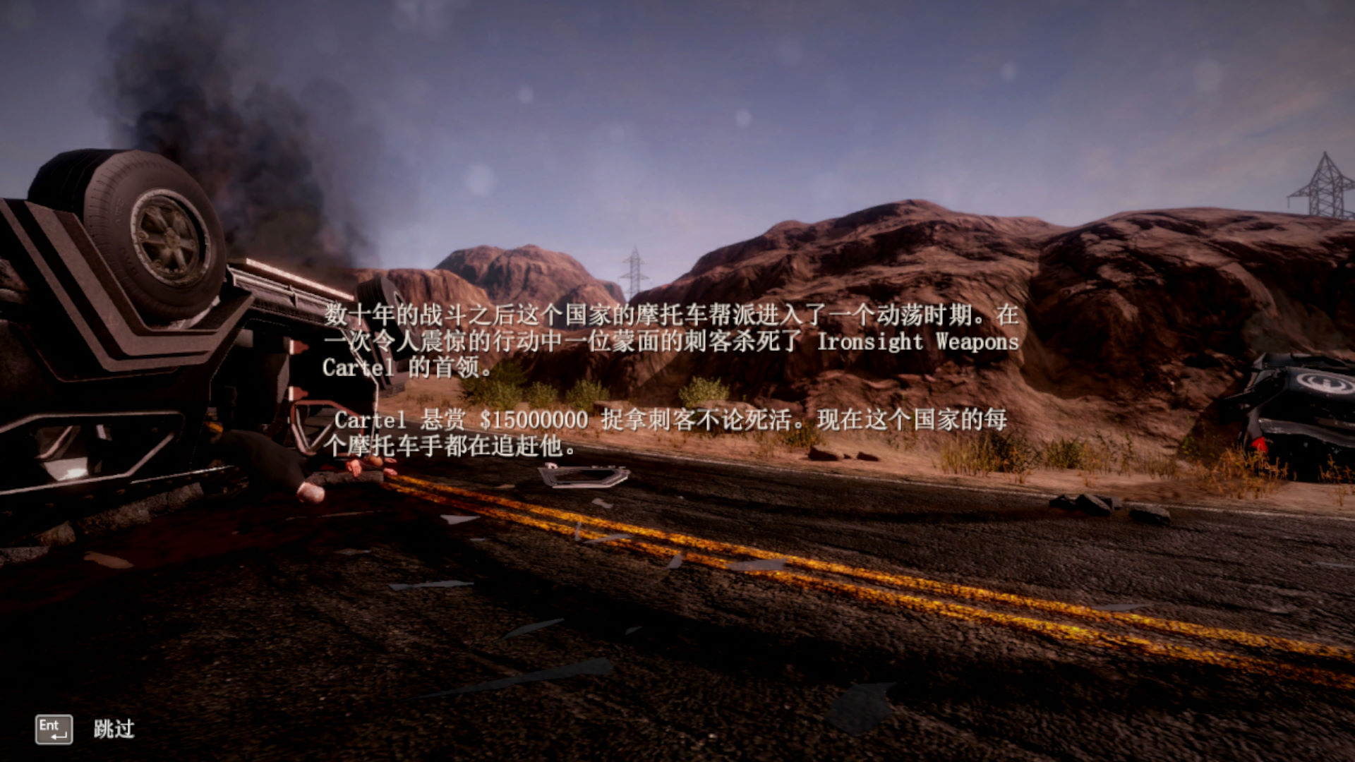 《公路救赎》发生在由残酷独裁者统治的劫后世界。Mad Max的粉丝应该会感到很熟悉。经过多年的街头血战,该国的摩托车帮派勉强进入休战期。当该国最富有的军火贩子被暗杀时,和平就此结束,神秘刺客被以 1500 万美元悬赏。您和帮派成员可以去追逐刺客以获得奖金,但您必须先穿越敌方阵营。该国的每个摩托车队都想要一这笔 1500 万美元的赏金,他们会毫不犹豫的处理掉那些造成阻碍的人。