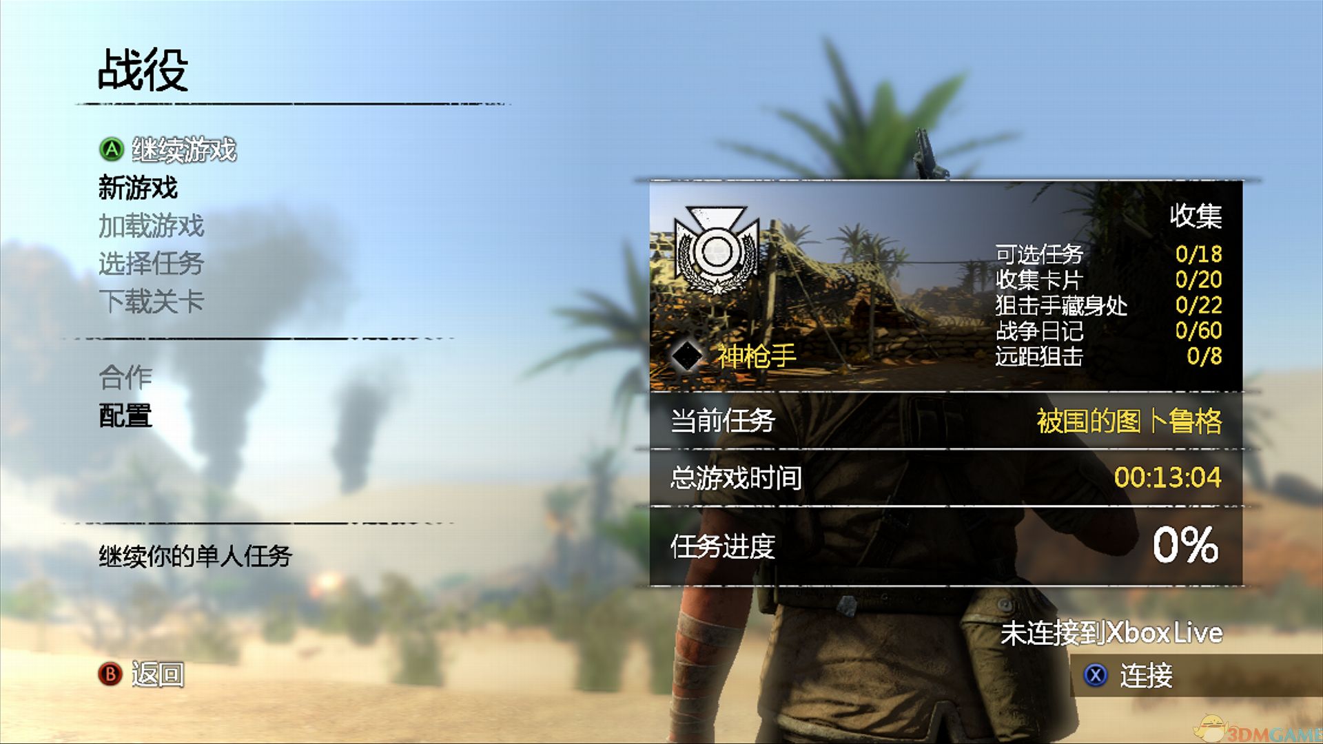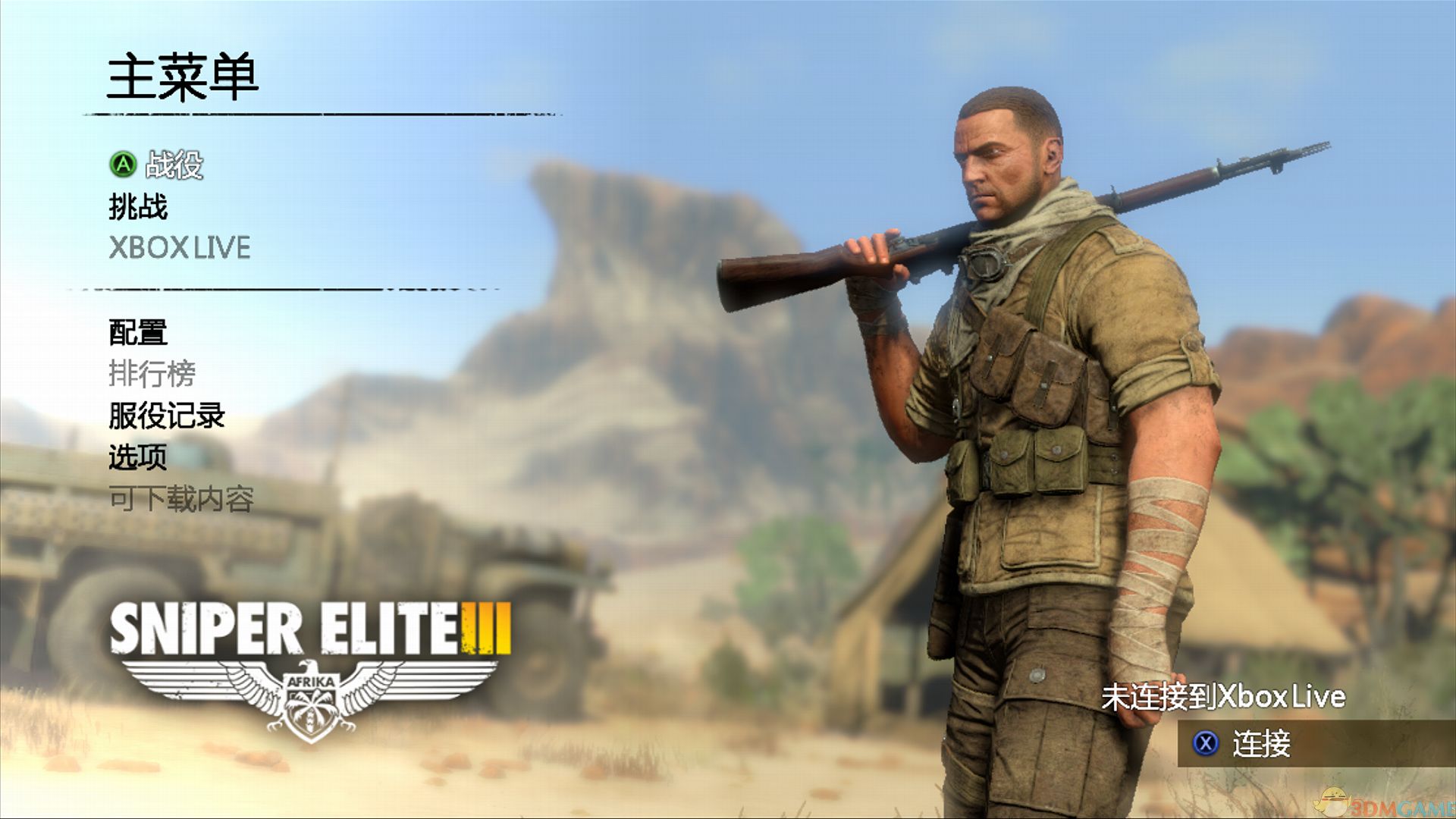 简中《狙击精英3(Sniper Elite 3)》是由游戏厂商Rebellion制作并于2014年6月27日发行在PC,PS4,Xbox One平台上的一款第三人称战术射击游戏。该作是《狙击精英》得续作,《狙击精英3》来到了非洲荒漠。许多人表示希特勒1945年在德国柏林地堡自杀,也有传言说他此前到往北非被狙杀,本作的预订任务“猎杀灰狼”将让你狙杀希特勒。