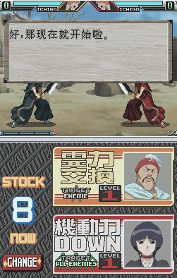《死神DS:追逐苍天的命运(Bleach: The Blade of Fate/Bleach DS: Souten ni Kakeru Unmei )》是由游戏厂商Treasure制作,Sega于2006年1月26日发行在NDS平台上一款改编自热门漫画《BLEACH死神》的对战格斗游戏。游戏内容丰富,完全还原剧情。