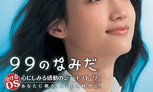 《九十九滴眼泪》是由日本NamcoBandai公司与早稻田大学联合开发的以“催人泪下的故事”为主要内容的新形态电子小说软件。在本作当中提供了可以使读者感动的故事共计99件,而且这些故事全部都是经过严格挑选并经过调查及测试才决定加入的优秀内容。这些故事涵盖了家庭、恋爱、婚姻以及友情等几个主题,每个故事大概需要10分钟阅读,在阅读中还穿插了美丽的画面和动听的音乐。