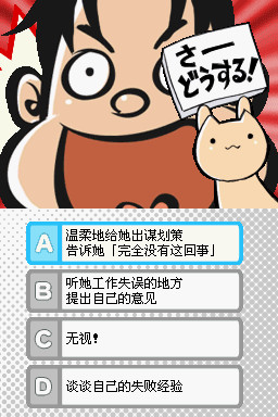 《万能先生的泡妞生活:白天讲座篇》是日本游戏厂商Takara Tom推出的一款恋爱养成小游戏,也就是教宅男如何泡妞。游戏提供了多种追女生的方式方法和参考指南,同时收录了大量的名人的恋爱名言,你在追女生的时候,一定用得上的哦。游戏提供了两种模式,“恋爱能力检测模式”“恋爱情景模拟模式”,玩家任选一种,都可以测出自己的恋爱技巧的到底有多高。