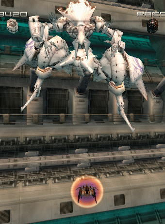 同时按下A键和B键:称为“力的解放”的特殊攻击。在吸收敌方子弹的同时,画面下方的能量槽会增加,当增加到一定量以后,便可释放这种特殊攻击。大约吸收敌方10发子弹能增加一格能量,一格能量能放出一条激光,蓄满时使用能同时放出12发。这种攻击不能抵消敌方的子弹,但能自动跟踪。 [2]