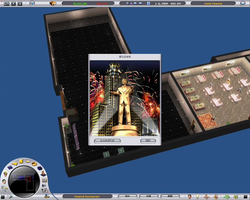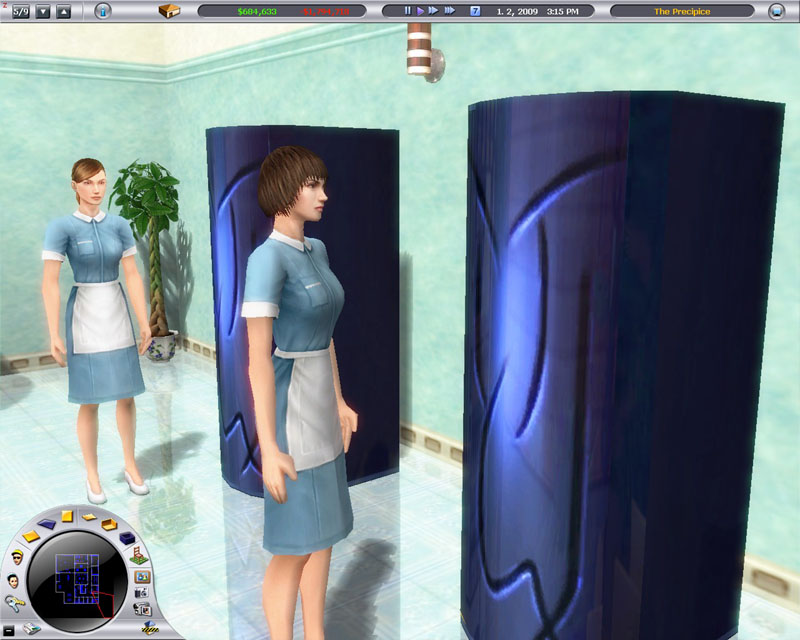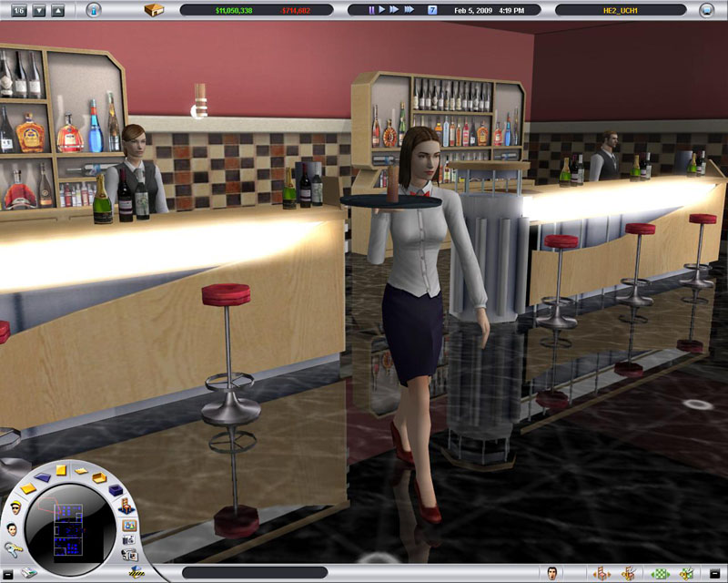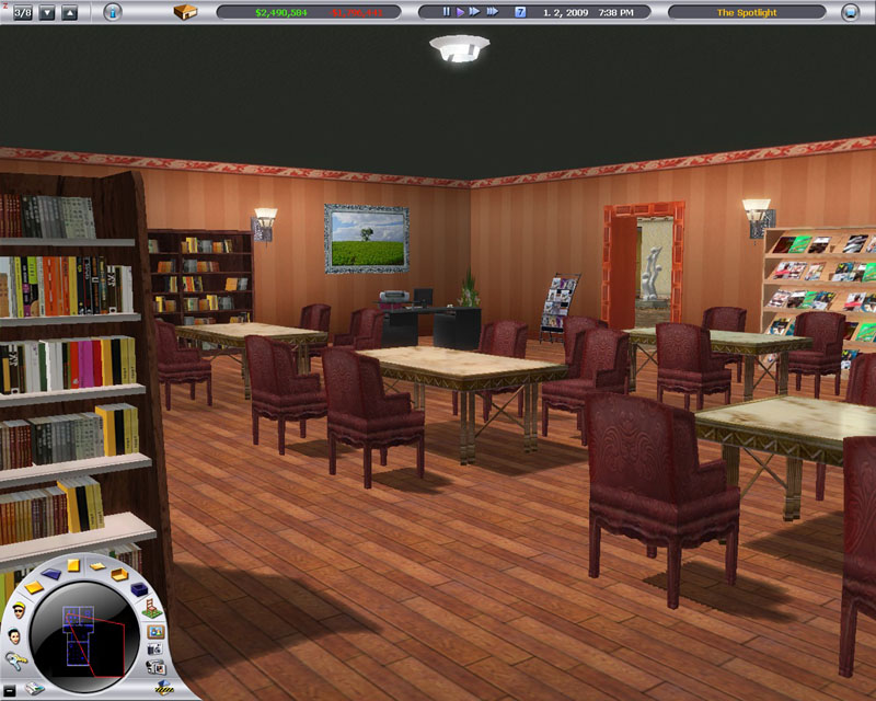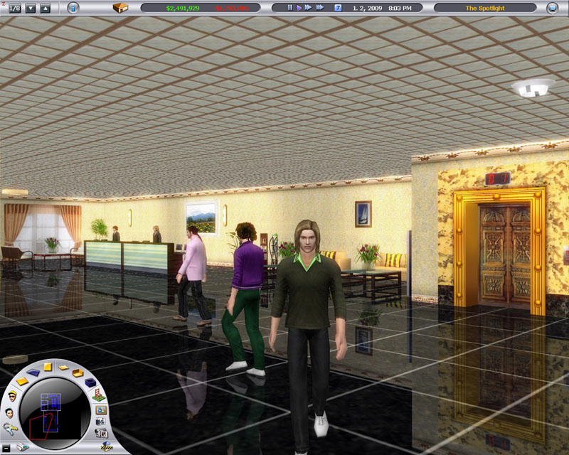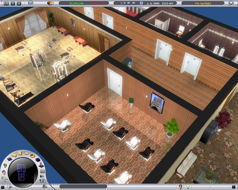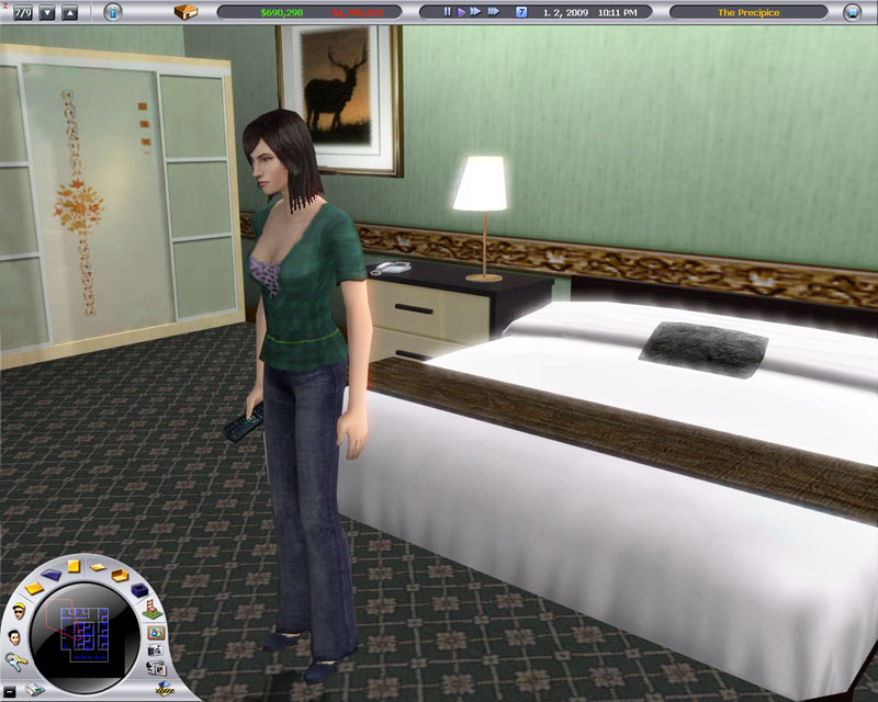 玩家可以从19种预设的旅馆类型中选择,然后规划饭店布局,包括大厅、卧房、餐厅、健身房、游泳池等各种机能空间的配置。还可以选择高达600种以上的布置、装饰物品来装潢饭店,但要考虑预算限制。