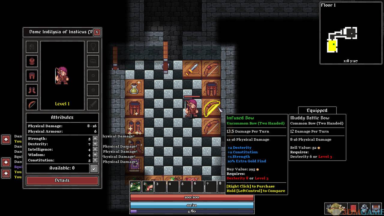 1人《幽闭恐惧症:向下斗争》由TheIndieForge制作发行,基于XNA引擎开发的一款开发世界RPG游戏。游戏讲述的是地下城的寻宝之旅,其中玩家将控制自己探险小队展开游戏,整体上是款策略性极强的作品。