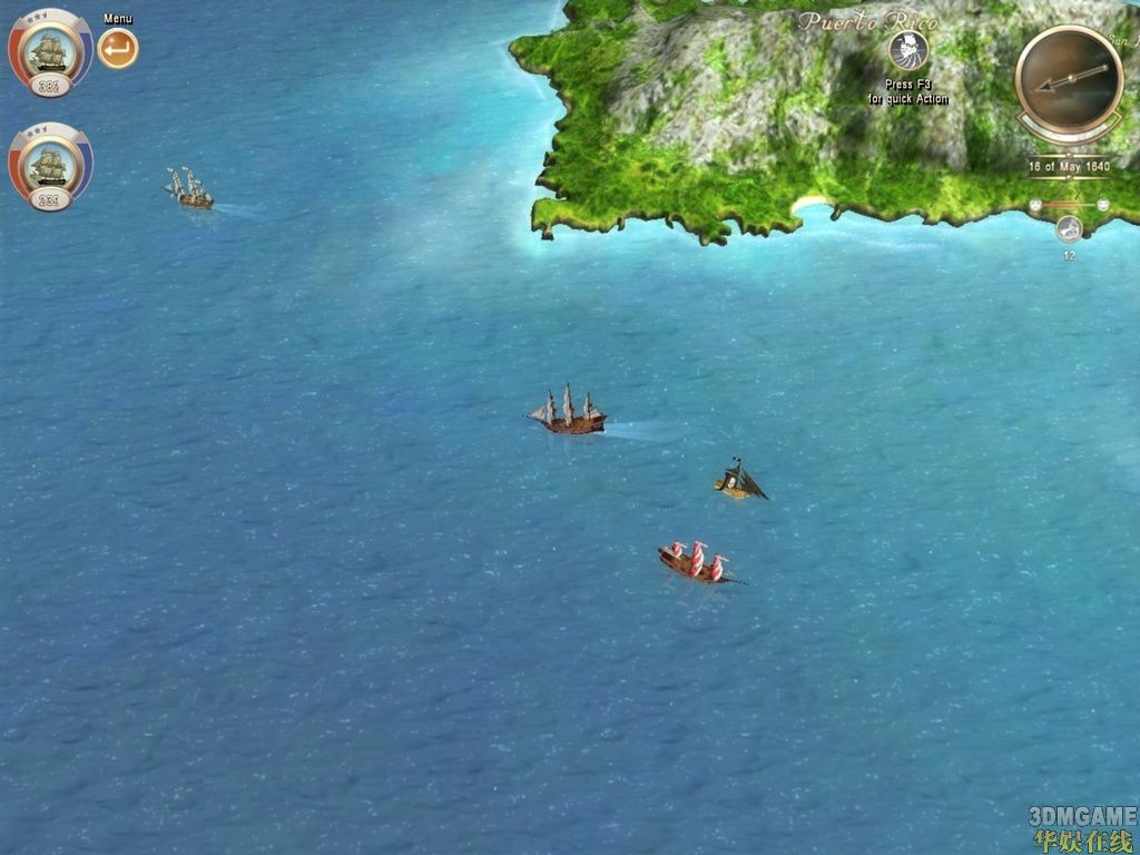 3、海洋上,你可以指挥多达16艘战舰的船队,还要随时注意天气的变化,尤其要防备可怕的风暴;陆地上,玩家可以光复西欧诸国的殖民地,建立不同的建筑以维护海盗的自由国度。