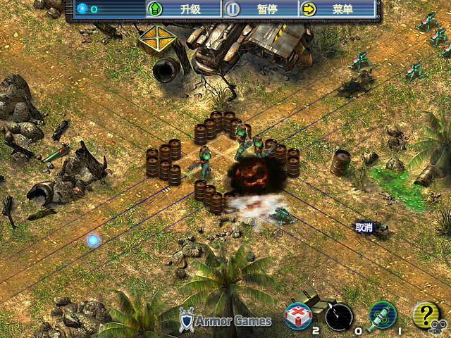 士兵的射程和技能也都各不相同,玩家可以外星人掉落的能源来升级技能,同时也能购买如医疗包等的道具来帮助战斗。