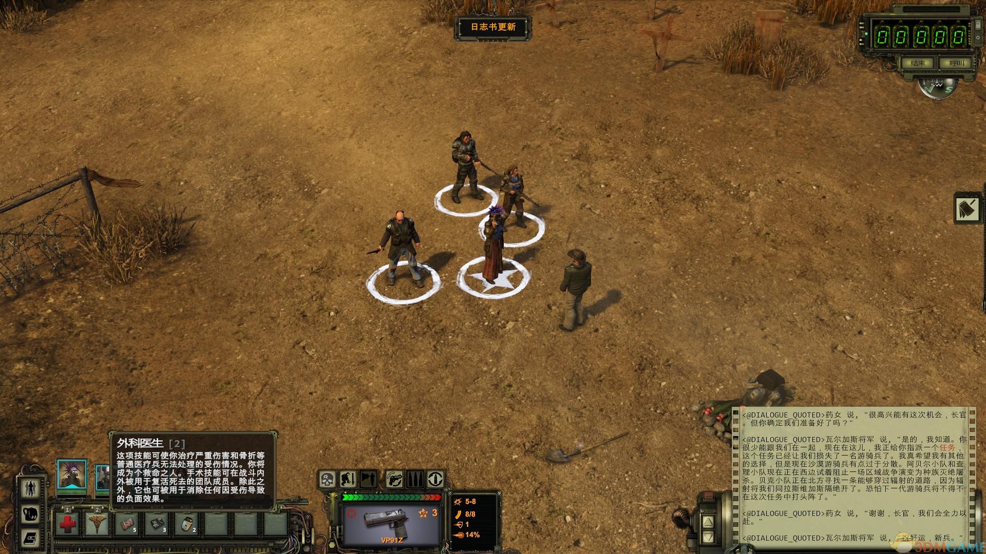 玩家可自定义角色及队友,在开放世界中探索,管理资源,如关注水供应和辐射剂量。游戏有主线任务,需按顺序推进剧情,同时还有丰富支线任务可自由选择。战斗采用回合制,玩家要根据地形、敌人类型制定战术,利用角色不同技能和武器进行战斗。