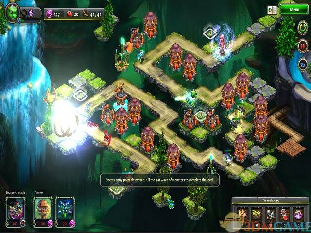 游戏主要通过塔防的模式,阻止敌人进攻,摧毁一个敌人的入口后,就能把这块土地与之前的领土拼接在一起,但需要消耗一定数量的金钱。