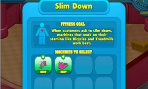 首先不同的题材决定了游戏的操作环节,你需要根据顾客的意愿来帮助他们制定健身计划,锻炼肌肉或是放松练习,需要你选择不同的器械。其次,通过收集的星星还可以提高人物属性,对行走速度,打扫卫生快慢等4项进行升级。