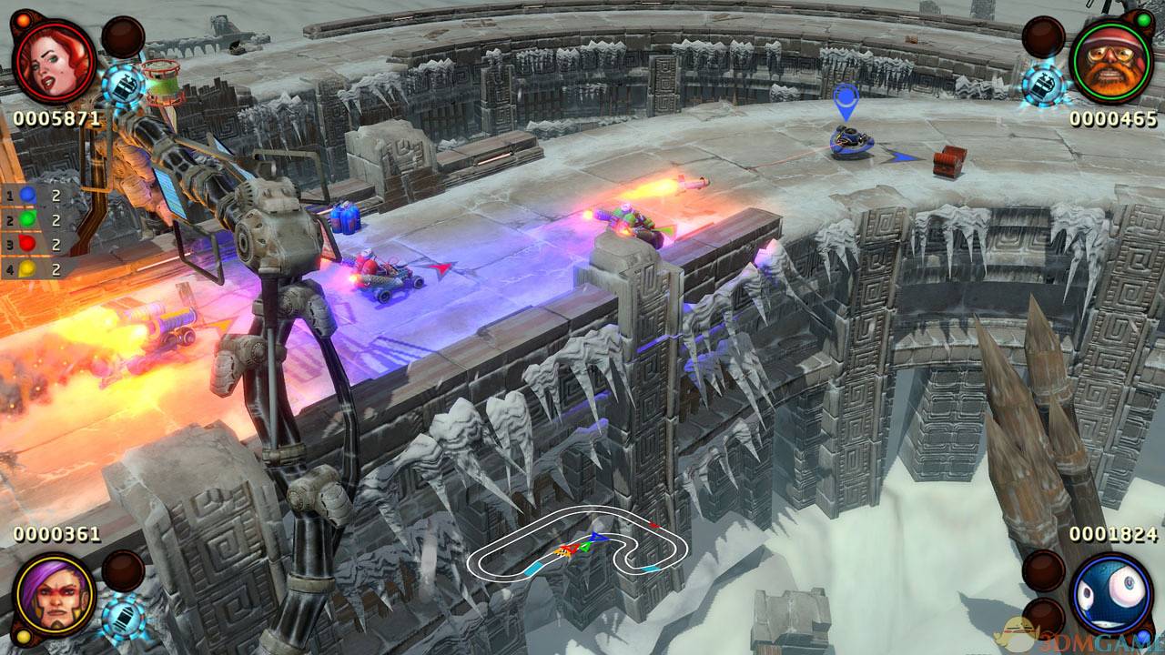 玩家在游戏中可以与朋友在本地或线上进行多人游戏,玩家所需做的事情相当简单,仅仅是破坏眼前的对手,并在弯角超出对手,运用策略来解决眼前的敌人、障碍物还有征服赛道。本地玩家可以四人同屏作战.